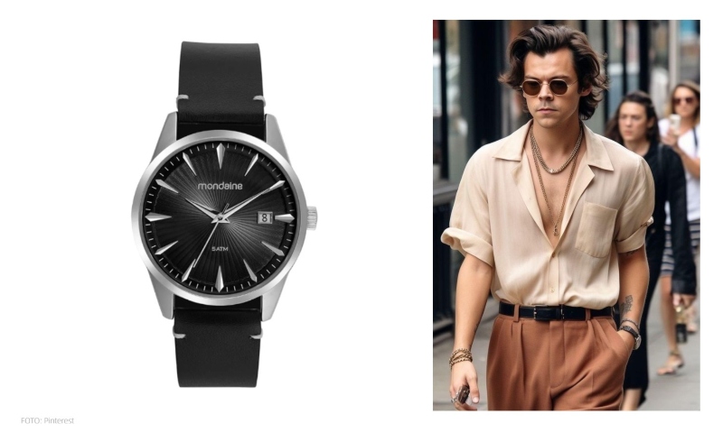 Sem ser muito chamativo, o artigo conta com uma pulseira de couro que pode apresentar um visual preto, marrom, azul e por aí em diante — sempre com a possibilidade de ser usado em ambientes mais formais, como uma reunião, um jantar ou um evento à noite.