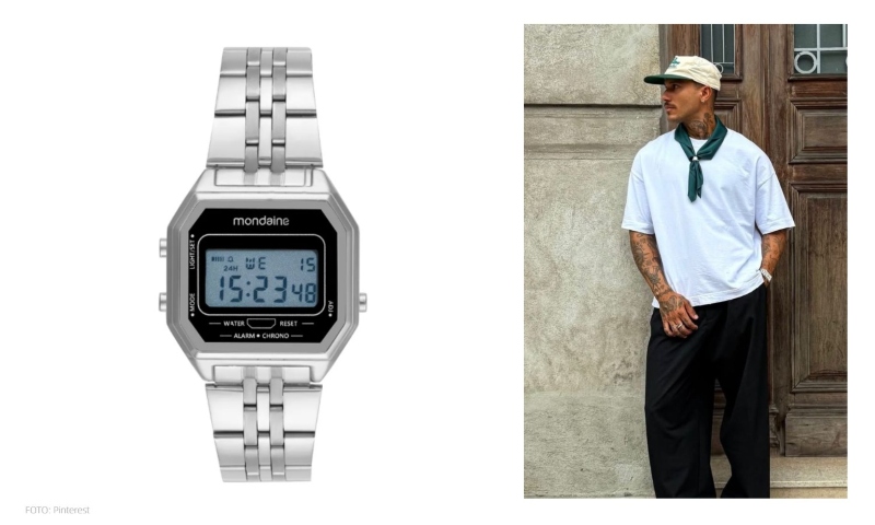 O mais legal? O relógio digital fica ótimo ao ser usado com produções casuais e até esportivas, indo bem com denim, jaquetas oversized, t-shirts e sneakers.