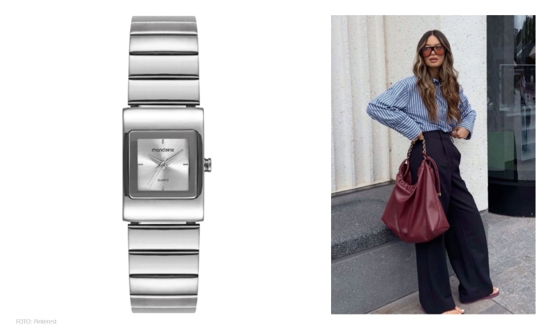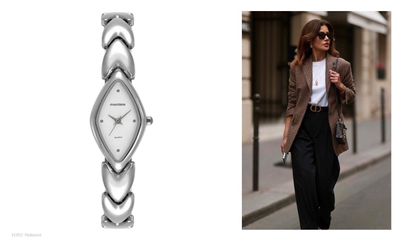• formatos variados: os relógios elegantes femininos também podem ser vistos em caixas ovais ou quadradas. A ideia é fugir do óbvio e adicionar personalidade ao look.