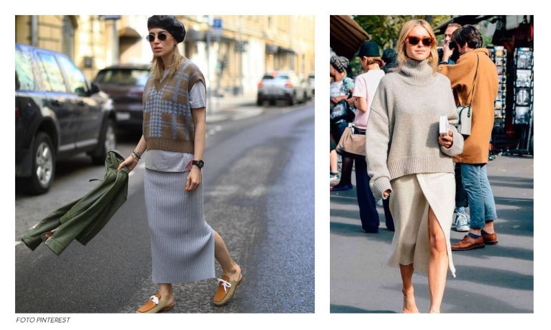 No Inverno 2025, os modelos de saia alongada, com textura canelada e corte evasê ou reto, estão surgindo como uma solução pra lá de versátil e superconfortável.